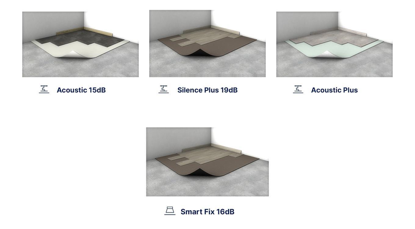 - Para una solución acústica todo en uno, complete nuestro Creation Solid Clic con nuestro Silence Plus 19dB, Acoustic 15dB o 19dB underday.