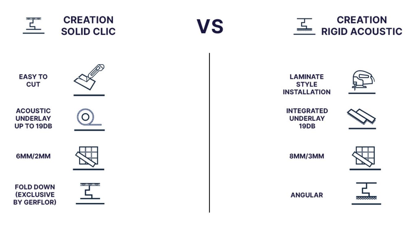 Creation All in 1 es también una nueva oferta de enclavamiento rígido con 2 tecnologías: Creation Solid Clic y Creation Rigid Acoustic.